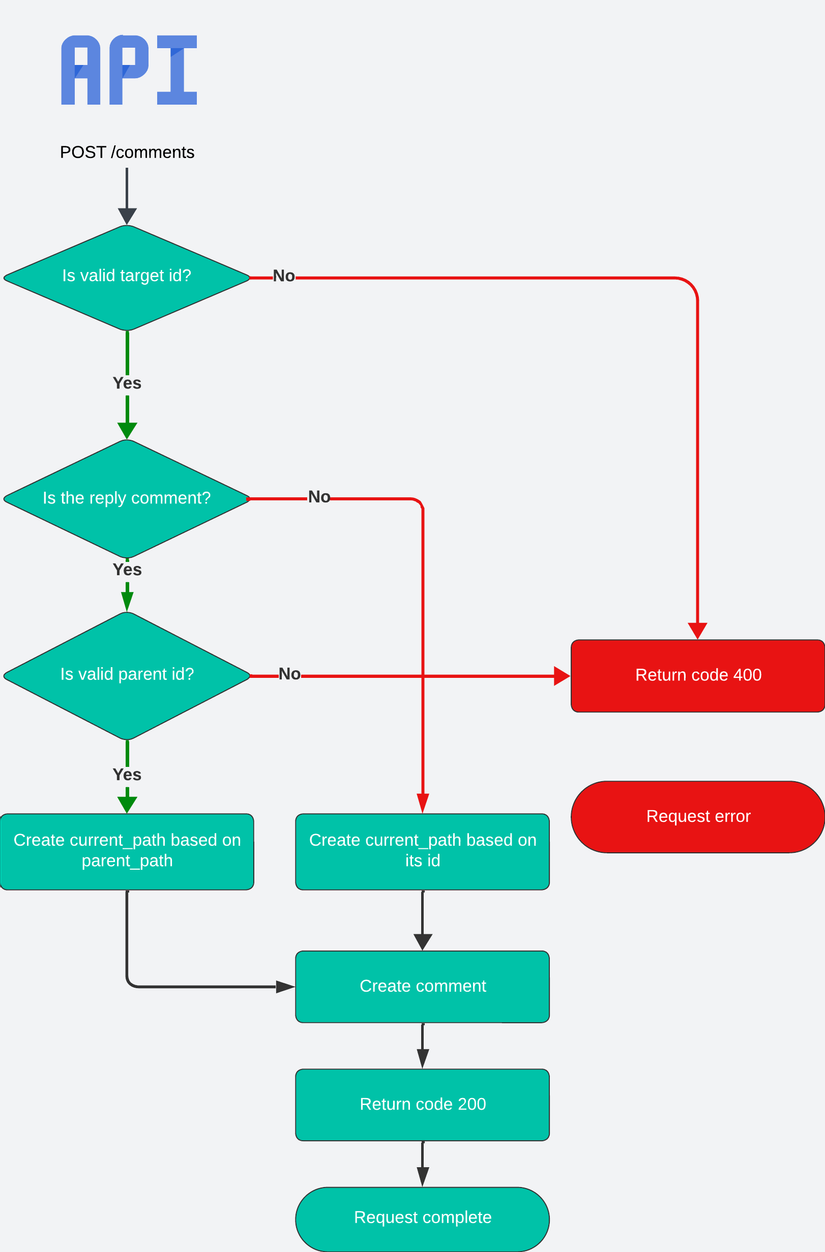 Logic của quá trình tạo comment sẽ là tạo và sau đó dùng