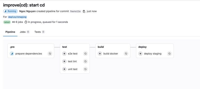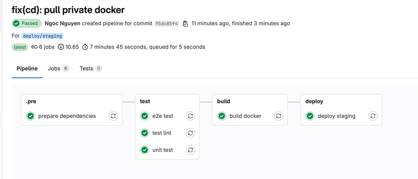 Sau khi đã copy xong giờ chúng ta thử chạy lại CICD ở nhánh deploy/staging nhé.