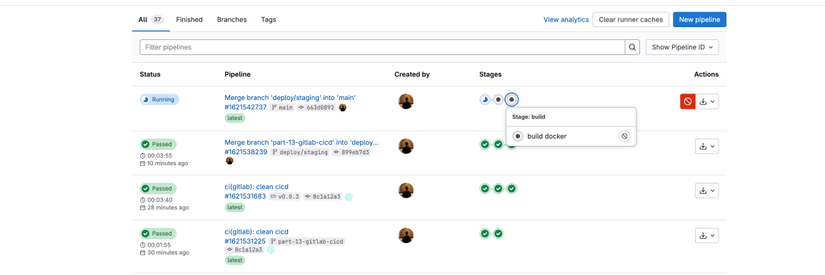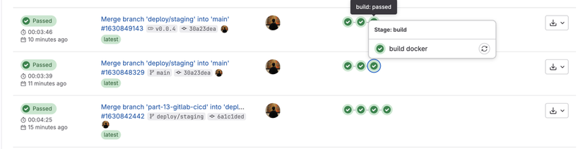 Đến đây chúng ta đã hoàn thiện xong quá trình set up CICD cho nhánh staging, các nhanh còn lại tuỳ theo nhu cầu mà các bạn có thể tự config cho dự án, từ giờ các bạn chỉ cần push code lên nhánh đã setup, mọi thứ còn lại cứ để Gitlab CI/CD lo 😁.